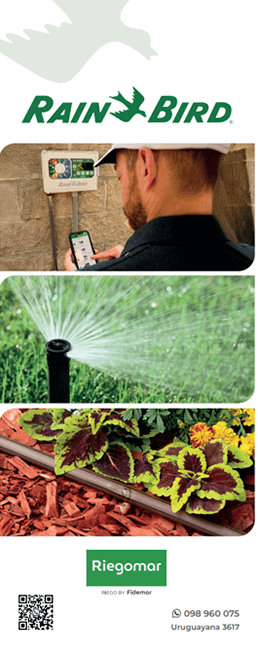 Rain Bird Corporation crea tecnología de riego que ayuda a definir el futuro de su empresa. Fundada en 1933, nuestros más de 4000 productos sustentan los elementos esenciales de la vida y protegen sus espacios verdes, guiados por el compromiso con el Uso Inteligente del Agua ™ . Nos basamos en casi un siglo de experiencia para servir a una amplia variedad de industrias, combinando el diseño natural con el ingenio humano para que el agua sea un recurso para todos.